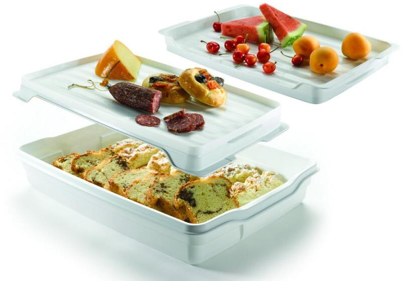 A tortabúra a tökéletes megoldás bármilyen sütemény tárolására és szállítására, legyen szó akár tortákról, muffinokról, vagy sütemény szeletekről. Kényelmes fogantyúval és biztonságos záródással rendelkezik, ennek köszönhetően szállítás közben nem fognak kiesni belőle a sütemények. Teteje levehető, így süteményes tálcaként is funkcionál a termék.