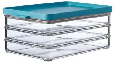 Mepal Omnia Felvágottas doboz hűtőszekrénybe 3 rétegű - nordic greenGyakran jársz piacra? Nem szereted a csomagolt felvágottakat? Szeretnéd csökkenteni a szemetedet, védeni a környezetet?Vagy csak jó lenne már valami rend a hűtőszekrényben?Mindezekre megoldás a Mepal Omnia felvágottas doboz, melyet magaddal vihetsz a bevársárlásra, és kérheted egyből ebbe a felvágottat.  Az egymásra illeszkedő dobozokban pedig szép rendszerezetten tarthatod a hűtőben a felvágottakat. A doboztető légmentesen zár, igy frissen tartja a húsokat, nem szárad ki semmi.  A tárolódoboz tulajdonságai: ...