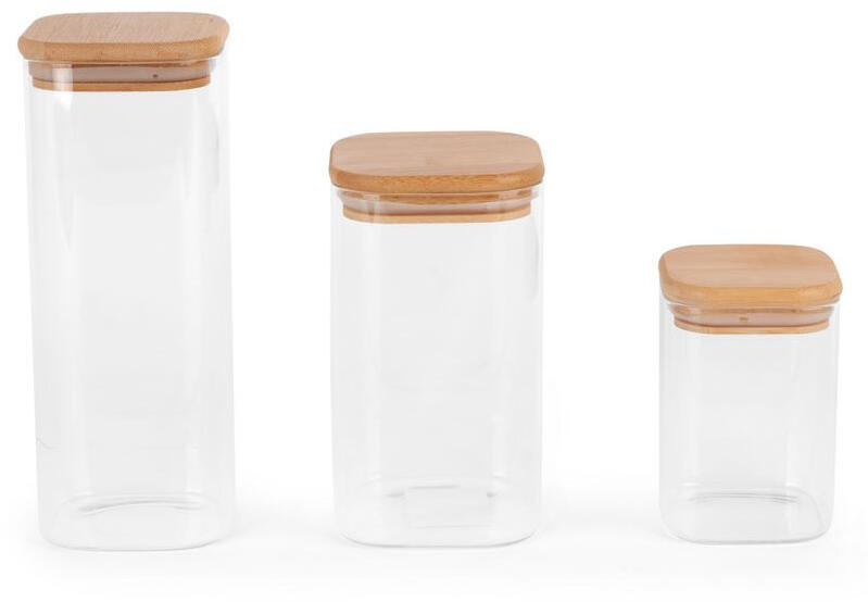 Pola1 3db-os üveg tárolóedény szett fa fedéllel - 800/1600/2000 ml (403543)