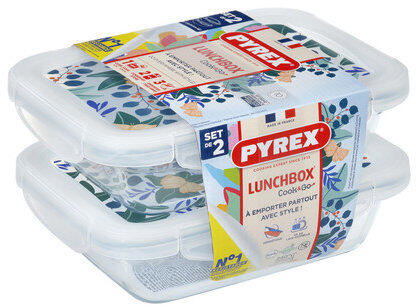 Pyrex 913S678/7643 Ételtároló doboz szett, téglalap alakú, 0, 8 l, 2 db